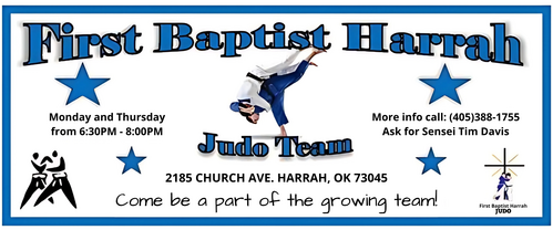 First Baptist Harrah Judo Team meets Monday and Thursday Evenings from 6:30 to 8 pm in the Family Life Center: